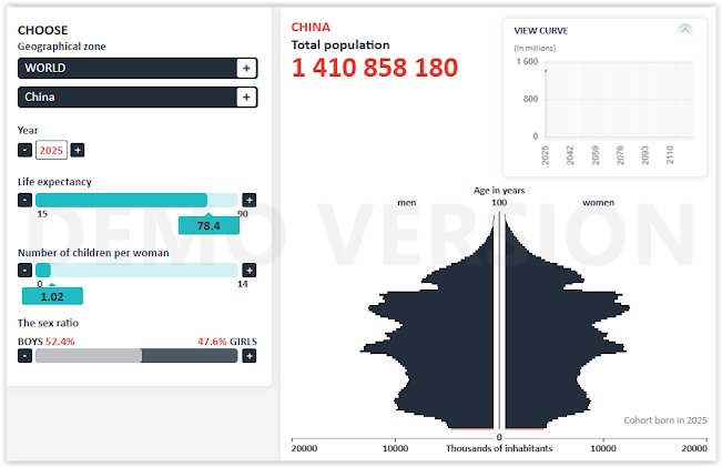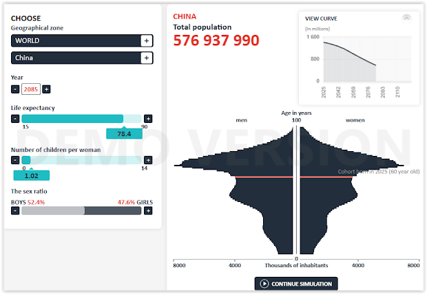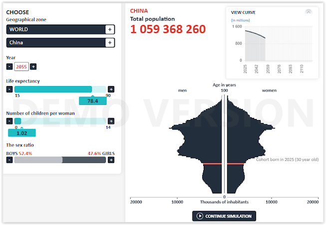 It can be seen that, according to this simulation, China's population has decreased by about 350 million people in 30 years, reaching about 1.059 billion, a reduction of approximately 25%.