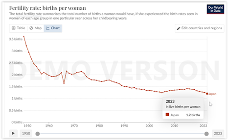 Furthermore, everything indicates that the fertility rate in my country (Spain) and in Japan will continue to go downward, not the other way around.