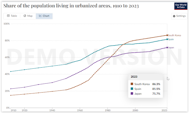 It can be seen that deaths exceed births from 2005-2007, so the deaths of the generation born in Japan's "Baby Boom" are not being replaced by new births or by immigration, since Japan has one of the lowest fertility rates in the world; in 2023 it was 1.23, i.e. only slightly higher than that of Spain (1.20), which by the way my country (Spain) has always been among the countries with the lowest fertility rates in the world for several decades (as our former president Mr. Zapatero would say "we are in the Champions League" in this aspect for a long time).