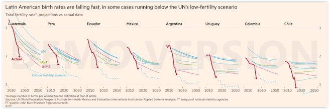 But that's not what we're seeing in most of the world, and that's why The UN's estimates of future births are completely off the mark in most countries , as I mentioned earlier regarding Latin America.