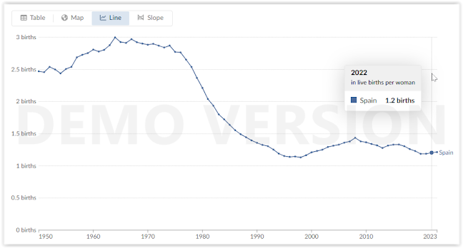 I want to analyze the case of Spain regarding this demographic issue for obvious reasons, since it's my country and what happens there will affect my children and, in general, my loved ones in the future.