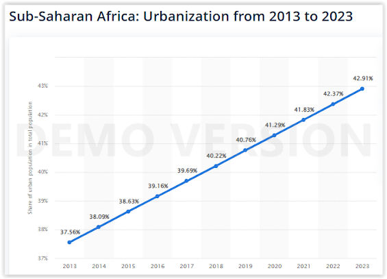 If we look at trends in fertility rates and the percentage of urban population in sub-Saharan Africa, I think we can see what's going on: