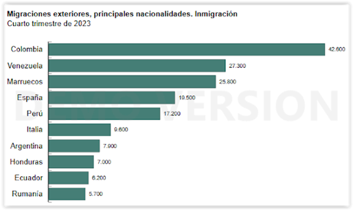 Using statistics from the INE (National Institute of Statistics) of our country, we find the following foreign-born population in our country at the end of 2023: