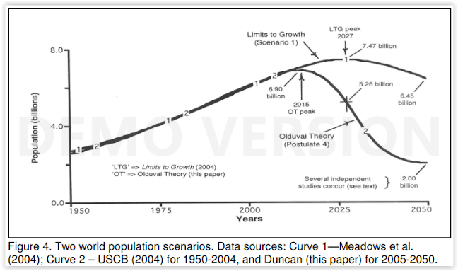 (Massive population collapse predicted by the so-called " Olduvai Theory " compared to the predictions of " The Limits to Growth" )