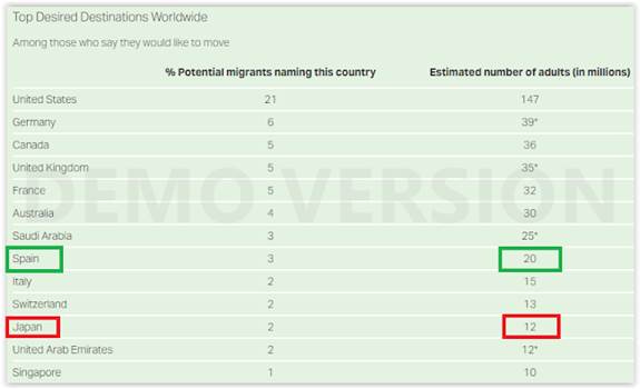 As an example of the aversion in accepting foreign immigration, we have that granting citizenship in Japan to a foreigner is something exceptional, for example in 2015 in Japan Japanese nationality was granted to 9,469 foreigners and the procedures to obtain it are a long series of barriers and obstacles of all kinds, because if there is something where both the government and Japanese society overwhelmingly agree is in not wanting any immigration, but this will have to change yes or yes and they should hurry, because Japan is a very unattractive country for potential immigrants, due to the language, cultural aspects, cost of living, and the remoteness of countries where there are more potential emigrants (such as Africa, the Middle East or Latin America), according to a Gallup survey Preferences for emigrating to Japan are very low globally, and significantly lower than, for example, Spain, despite Japan being a much richer country economically and with an extraordinarily low unemployment rate :