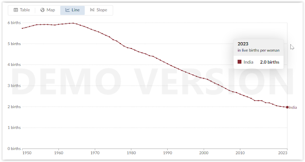 Similarly, if we look at the fertility rates of the most populous country on Earth: India, we have this trend: