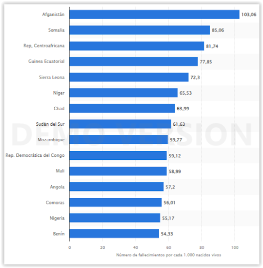 Furthermore, as I mentioned before, the replacement rate is 2.1 children per woman when infant mortality is practically zero , as is the case in developed countries, but when it comes to countries such as those in Sub-Saharan Africa or even India, which is where most children are born today, this replacement rate increases more because fewer children survive until they reach fertile age.